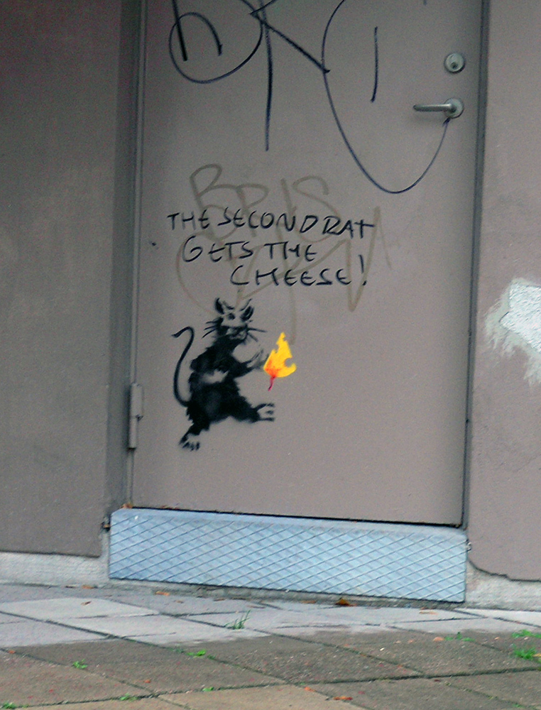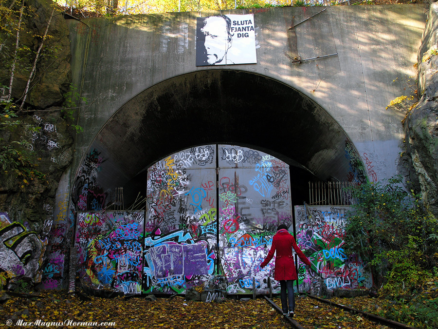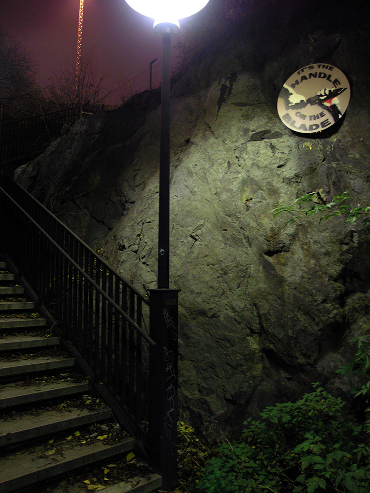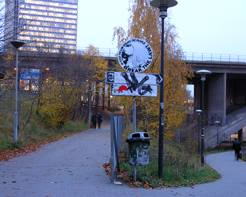 En 3 × 3 metersversion av “Sluta fjanta dig” över Eriksdalstunneln 2011.